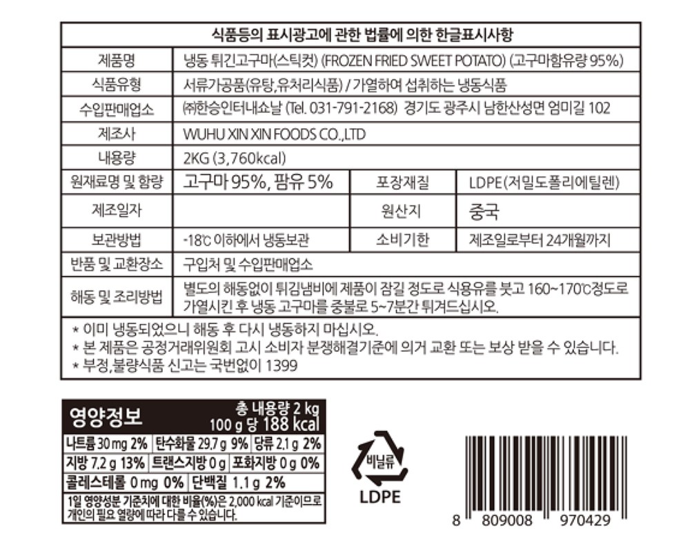 냉동 튀긴 고구마