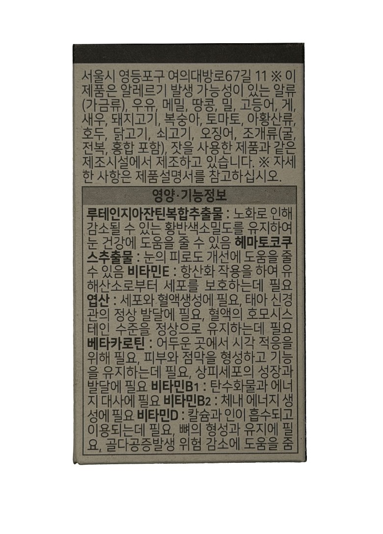 | 원료명 및 함량 | 상품 상세페이지 참조 | 영양정보 | 상품 상세페이지 참조 |