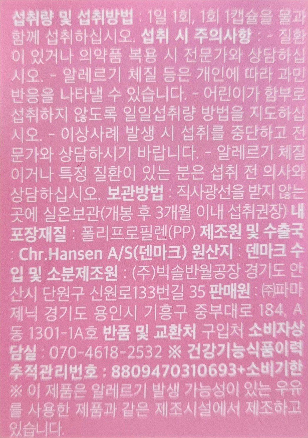 - 유산균 종류: 프로바이오틱스