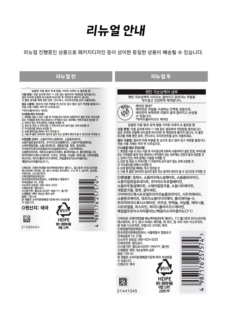 | 용량(중량) | 컨텐츠 참조 | 제품 주요 사양 | 모든 모발용 |