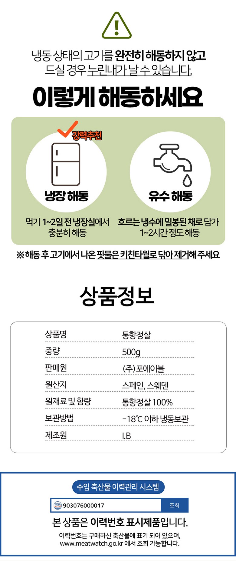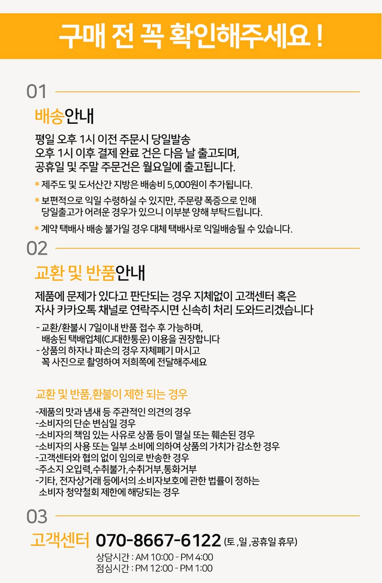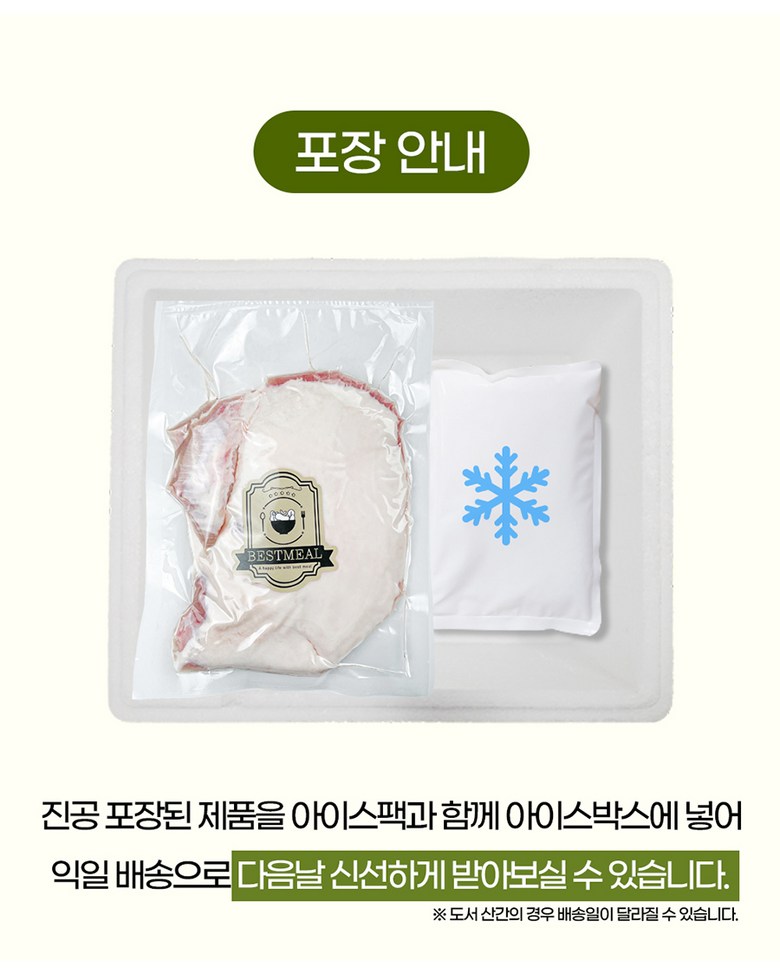 | 배송방법 | 신선/냉장/냉동 | 배송비 | 무료배송 - 도서산간 지역 배송불가 |