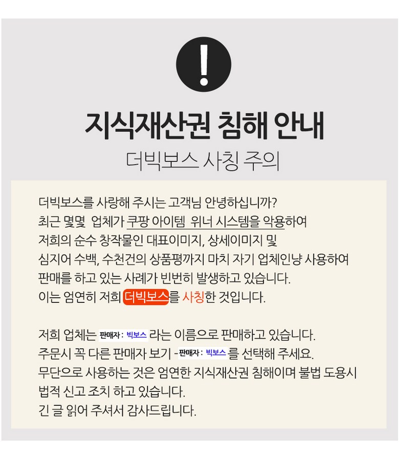 판매 부적격 상품 또는 허위과장광고 및 지식재산권을 침해하는 상품의 경우 신고하여 주시기 바랍니다.