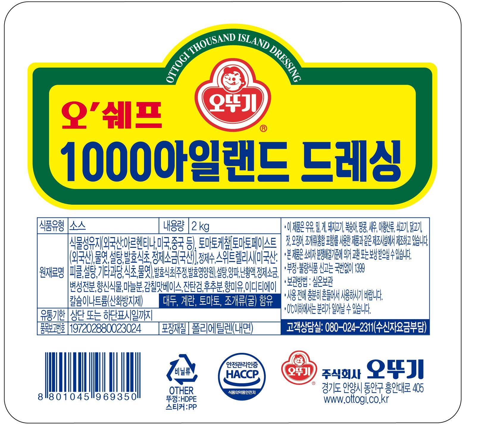 | 제품명 | 오쉐프 1000 아일랜드 드레싱 | 식품의 유형 | 컨텐츠참조 |