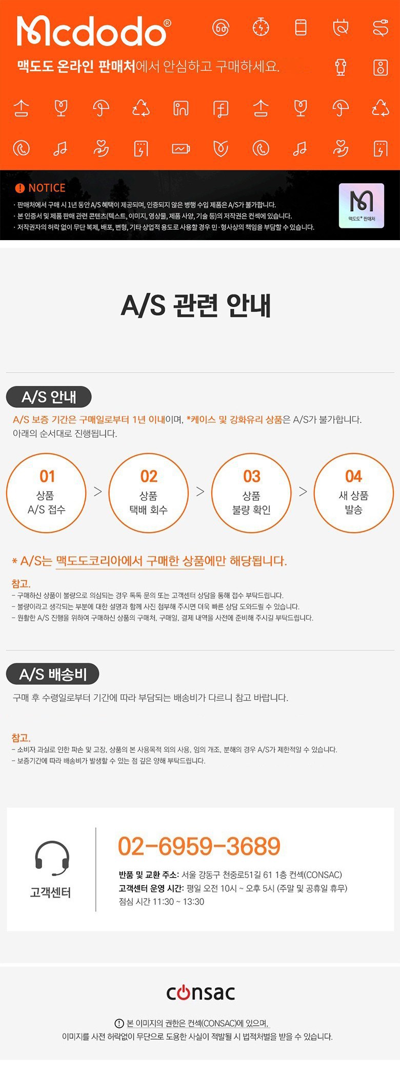 | 제조자(수입자) | Dongguan XiaoGu Electronic Technology Co., Ltd., 맥도도 / 컨섹 (CONSAC) | 제조국 | 중국 |