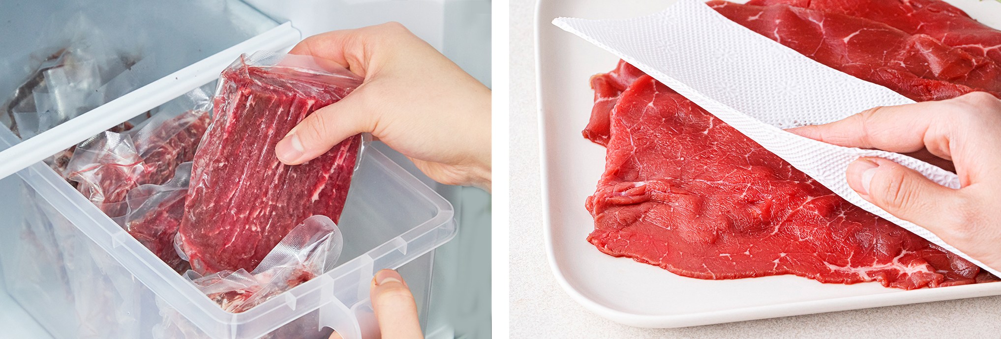 * 냉동 고기는 냉장 신선실이나, 서늘한 곳에서 천천히 해동하는 것을 추천 드려요.