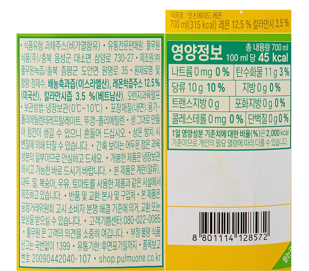 | 포장단위별 내용물의 용량(중량), 수량 | 700ml x 2개,1개 | 원재료명 및 함량 | 컨텐츠참조 |