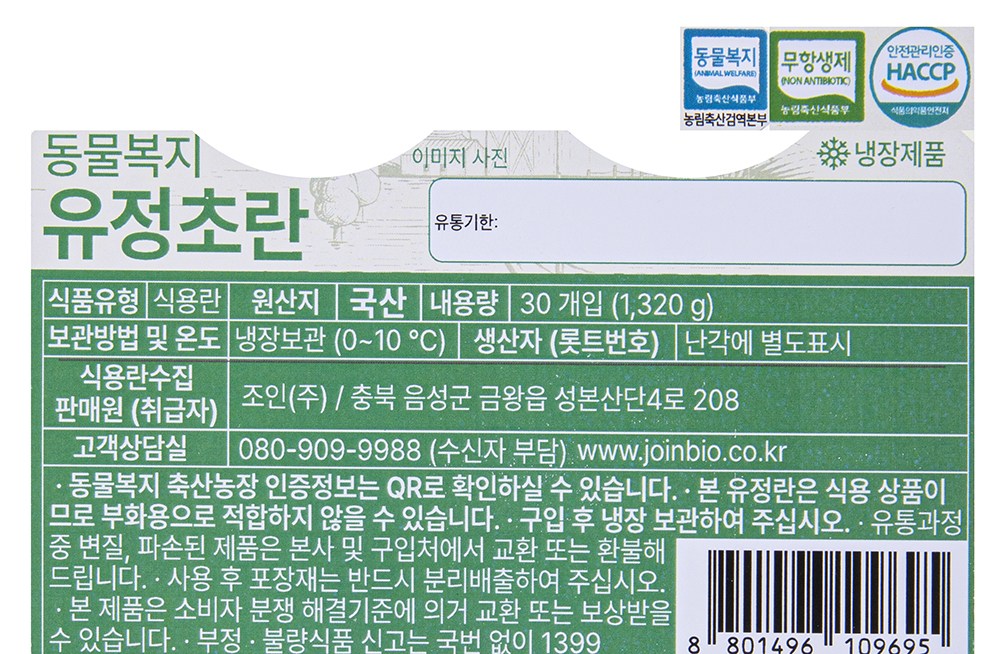 - 특징: 동물복지 무항생제 유정란