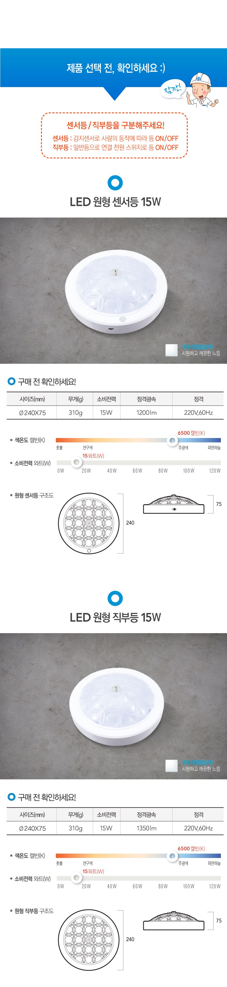 | 품명 및 모델명 | 씨티오 LED 원형 센서등 15W_주광색(형광등색) / LEDSEN15N-DHE(B) | KC 인증정보 | JU11304-16011D, R-R-LHJ-LEDSEN15N-A |