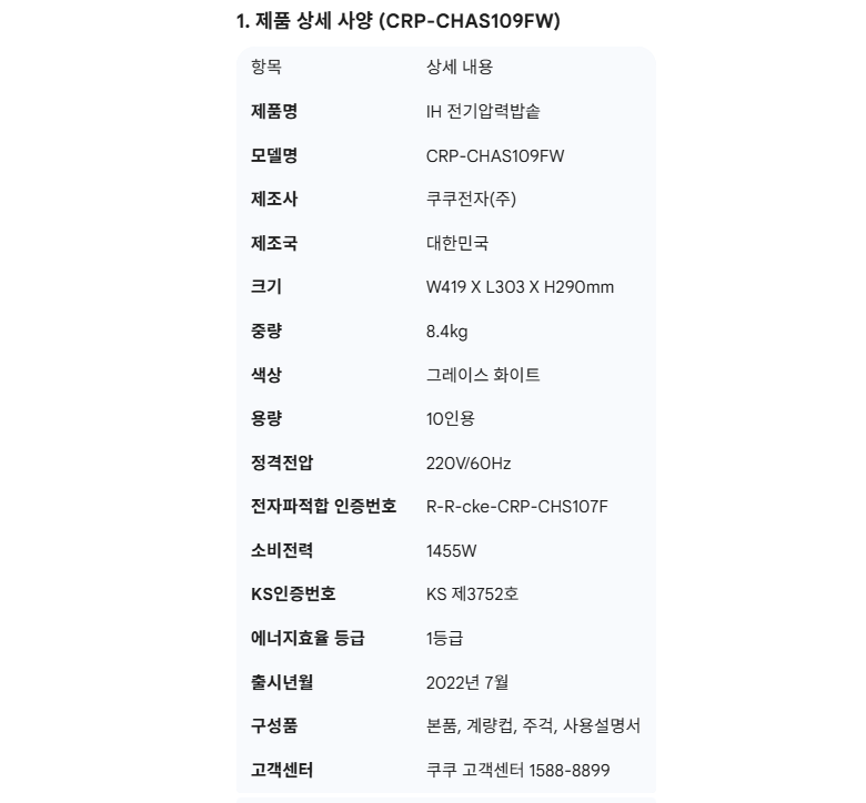 본사직영) 쿠쿠 CRP-CHAS109FW