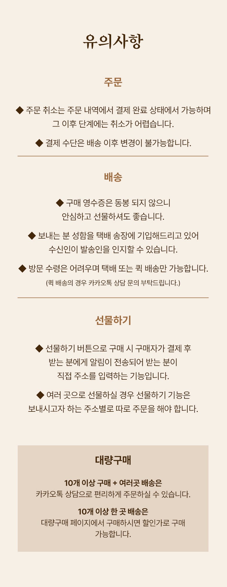 - 상품문의 및 후기게시판을 통해 취소나 환불, 반품 등은 처리되지 않습니다.