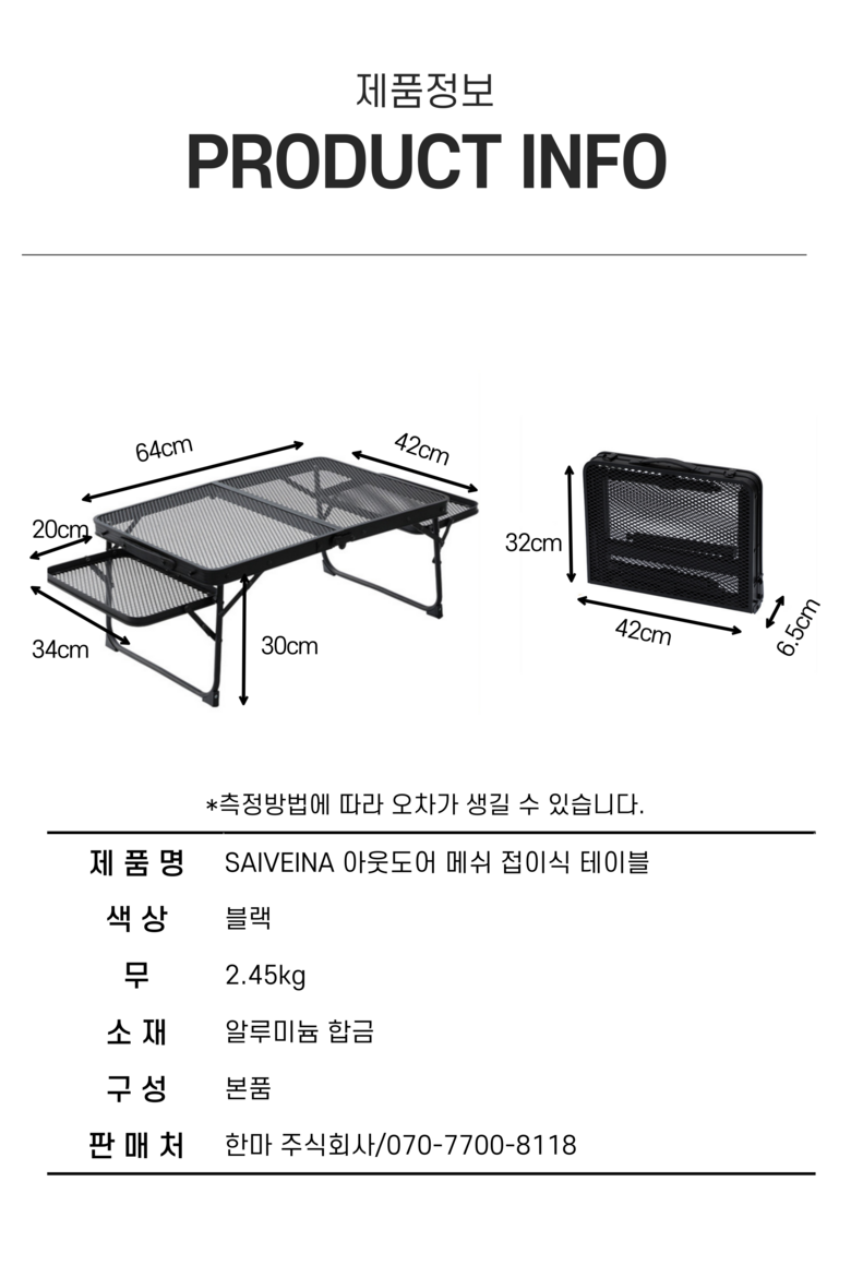 - 캠핑테이블 상판재질: 알루미늄