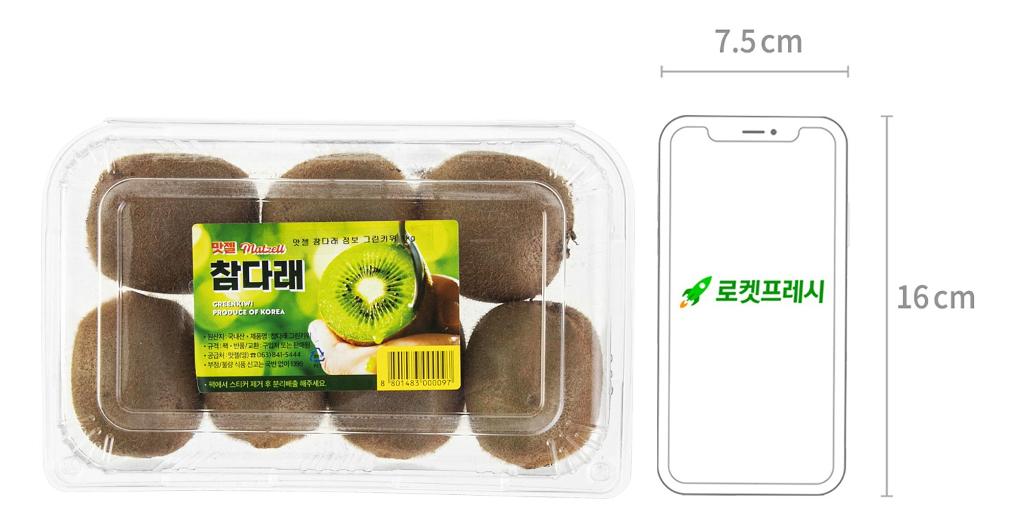 | 품목 또는 명칭 | 맛젤점보참다래 | 포장단위별 내용물의 용량(중량),수량,크기 | 1kg x 3팩,1개 |