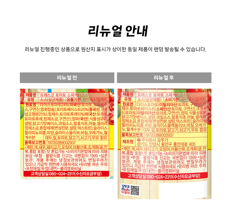 | 제품명 | 프레스코 토마토 스파게티소스 | 식품의 유형 | 컨텐츠 참조 |
