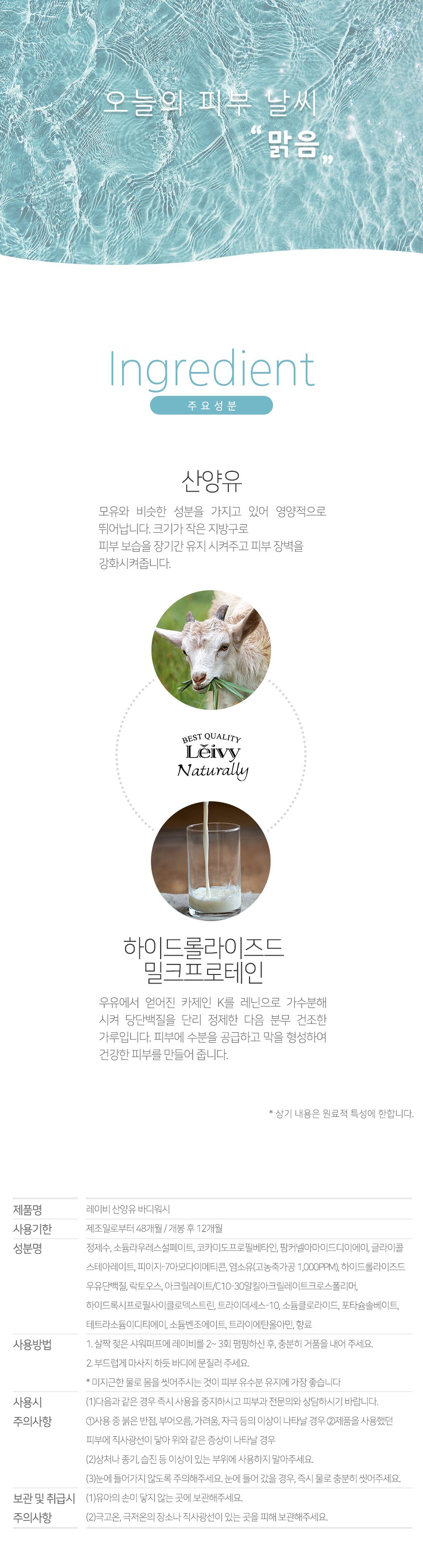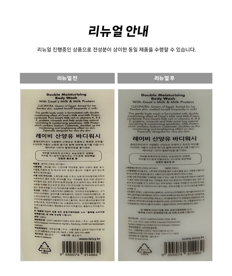 | 화장품제조업자, 화장품책임판매업자 및 맞춤형화장품판매업자 | LEIVY LABORATORIES SDN, BHD. / (주)라온글로벌 | 제조국 | 말레이시아 |