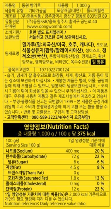 | 제품명 | 동 원 고운 빵가루 | 식품의 유형 | 기타가공품 |