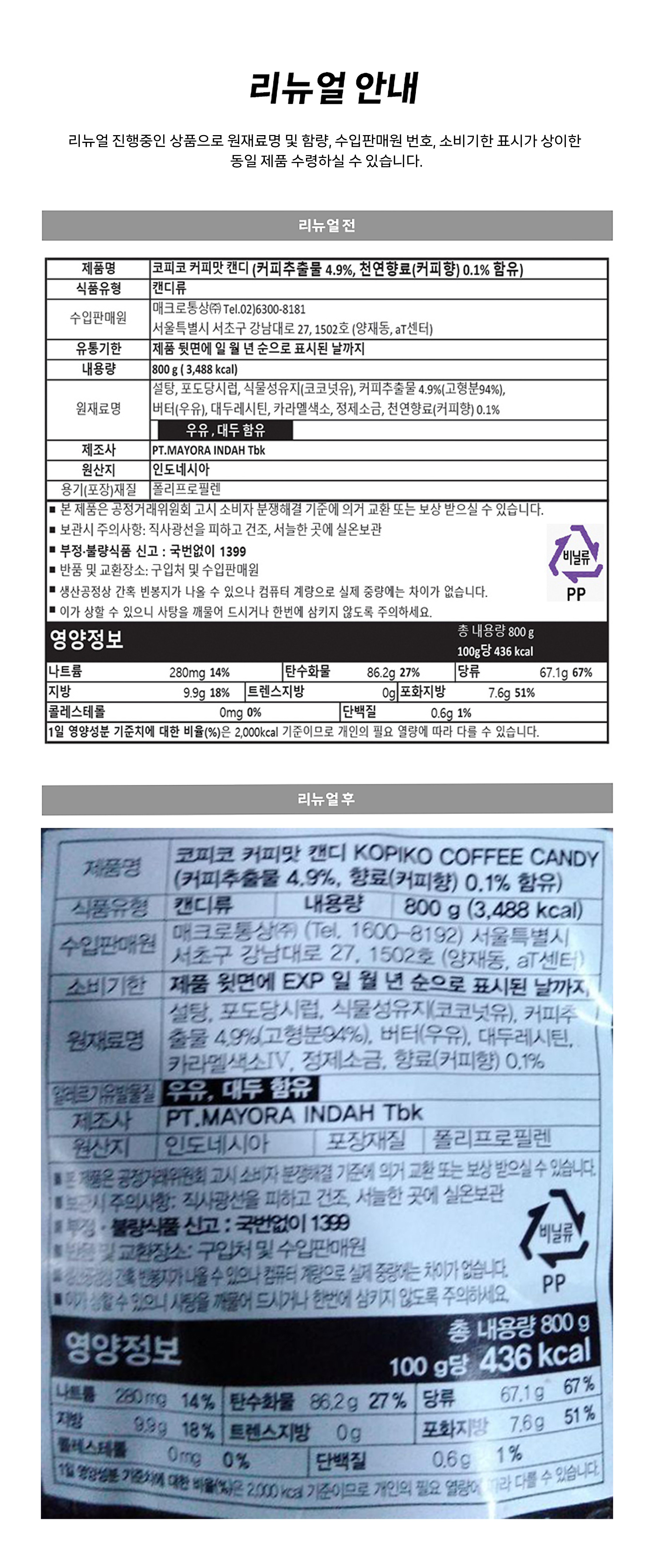 | 제품명 | 코피코 커피맛 캔디 | 식품의 유형 | 캔디류 |