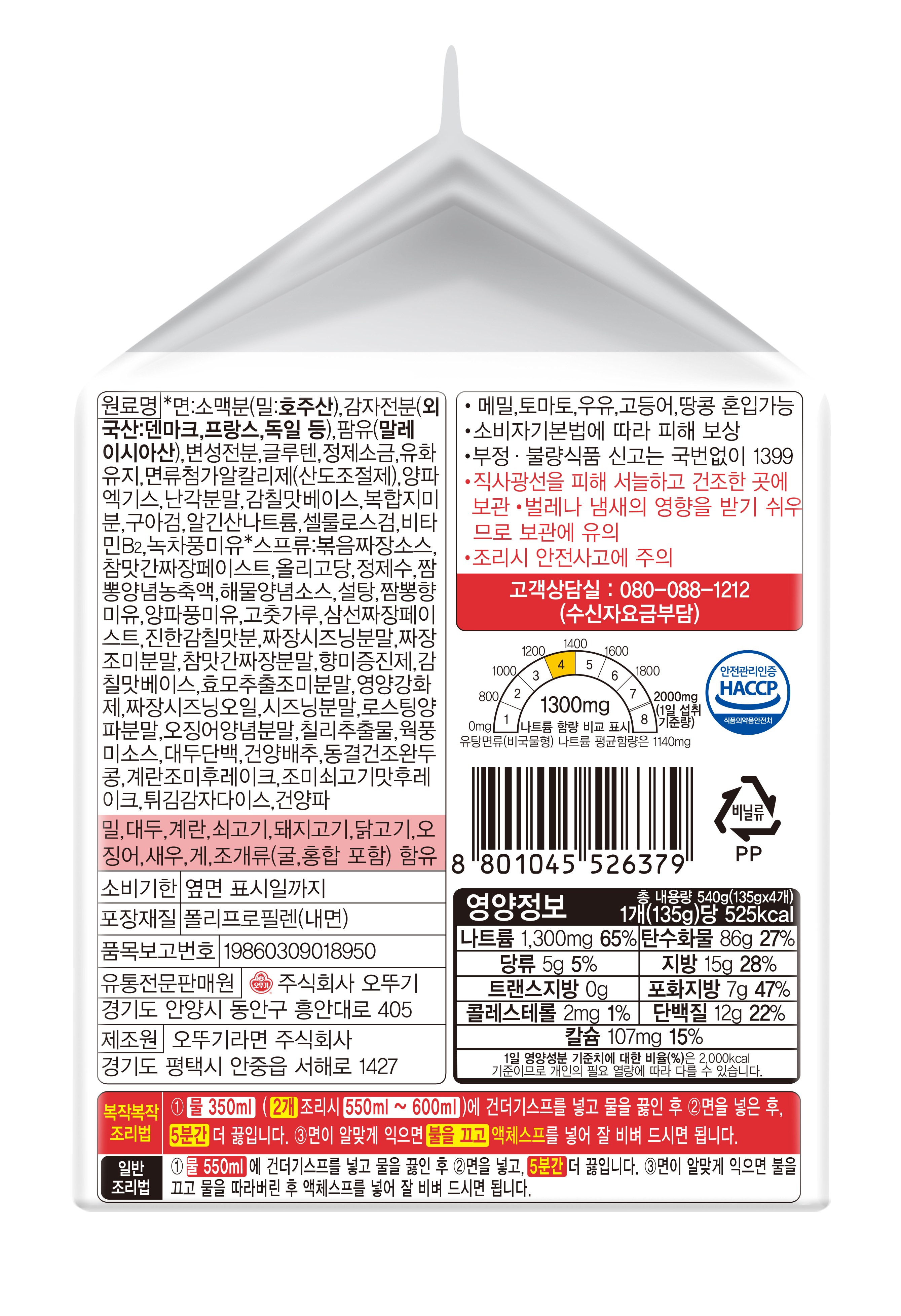 | 제품명 | 오뚜기 진진짜라 | 식품의 유형 | 유탕면 |