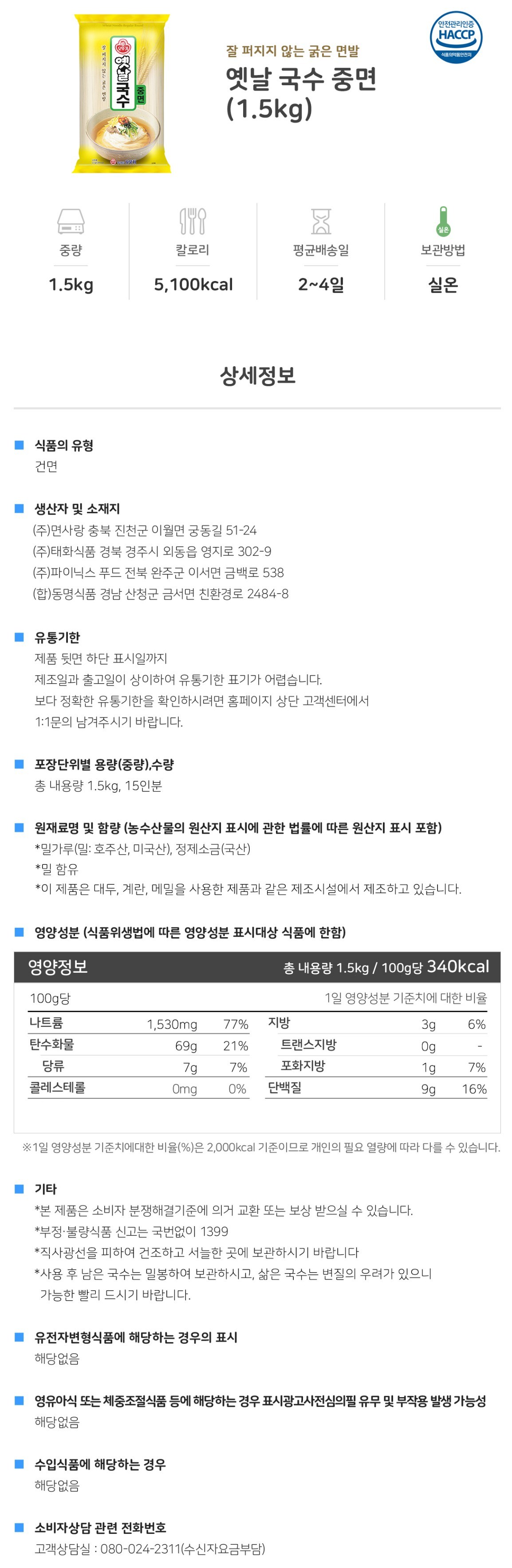 | 제품명 | 옛날 국수 중면 | 식품의 유형 | 국수류 |