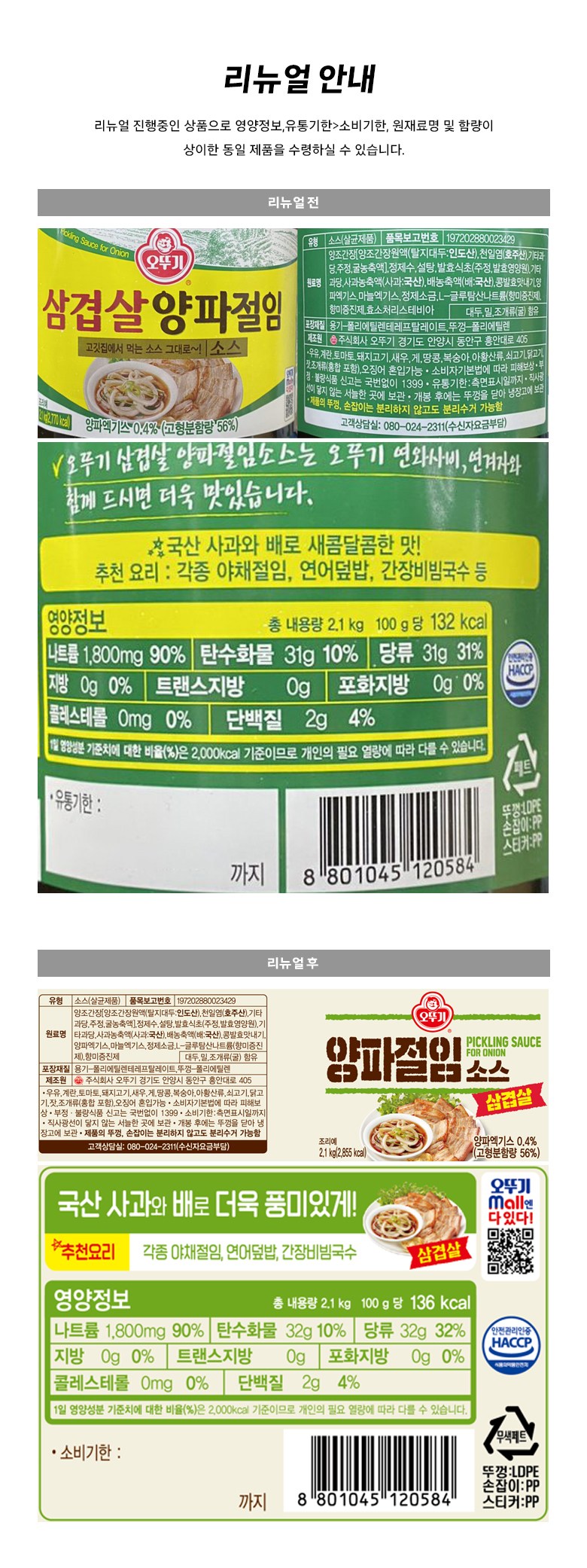 | 제품명 | 삼겹살 양파절임소스 | 식품의 유형 | 컨텐츠 참조 |