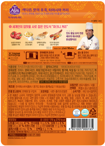 | 제품명 | 티.아시아 치킨마크니커리 | 식품의 유형 | 컨텐츠 참조 |