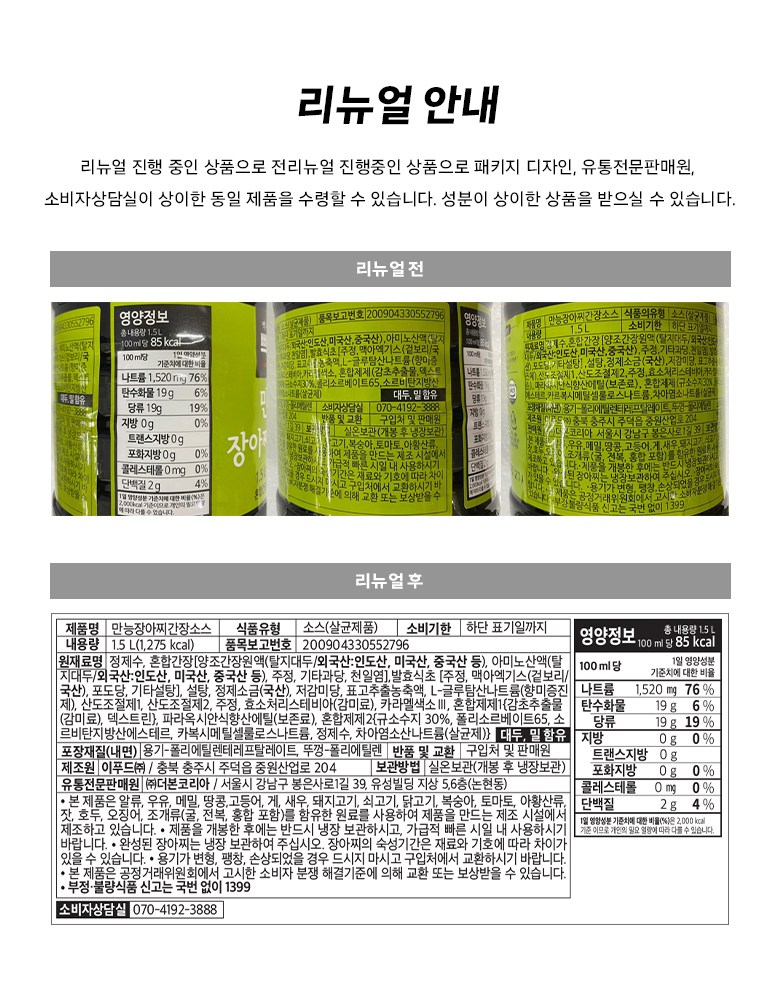 | 포장단위별 내용물의 용량(중량), 수량 | 1.5L x 2개 | 원재료명 및 함량 | 컨텐츠 참조 |