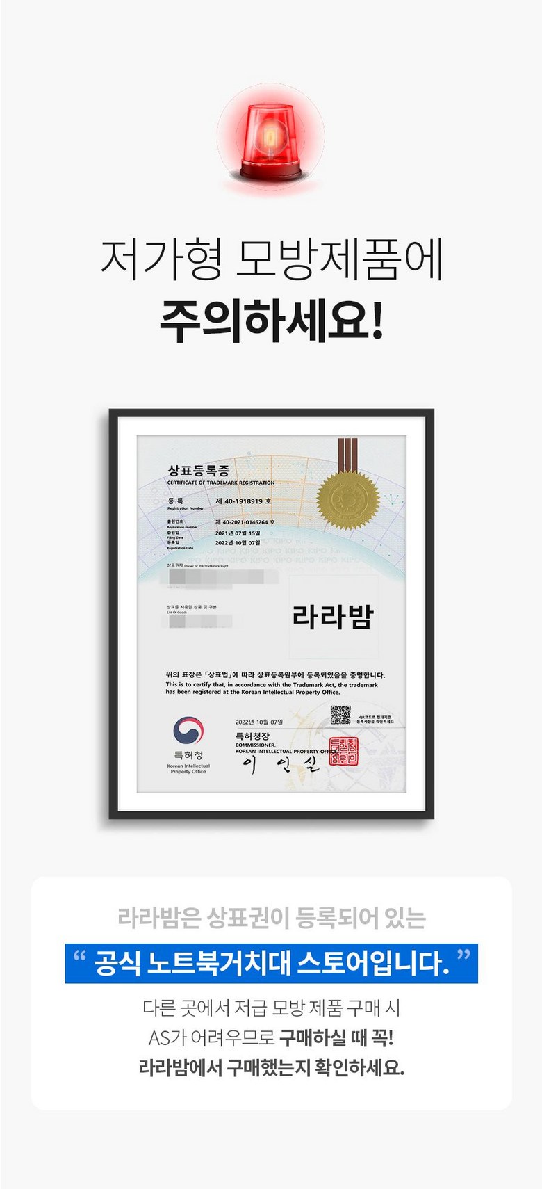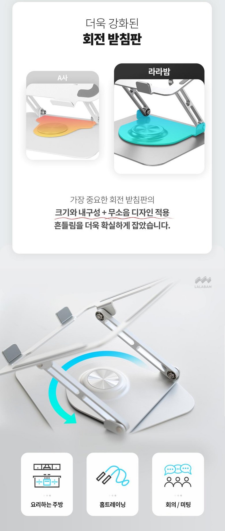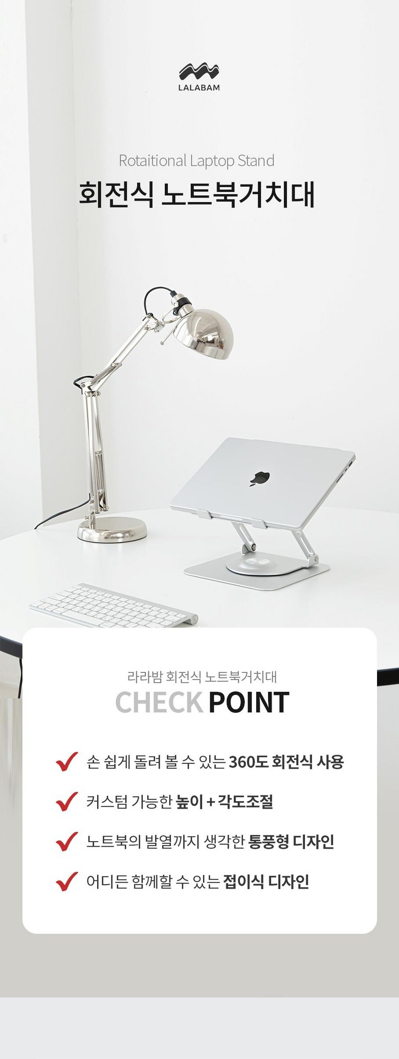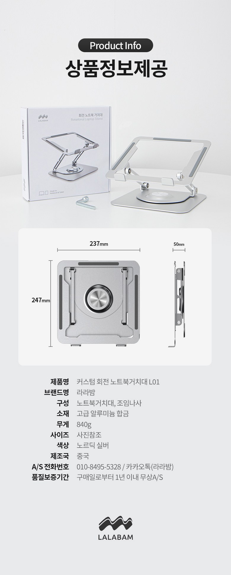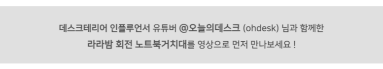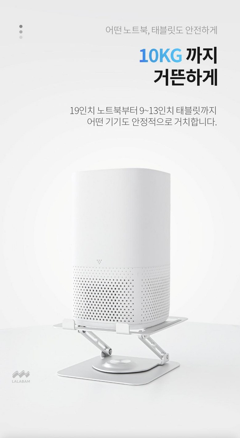 | 품명 및 모델명 | 라라밤 360도 회전 프리미엄 노트북거치대 | 인증/허가 사항 | 해당없음 |