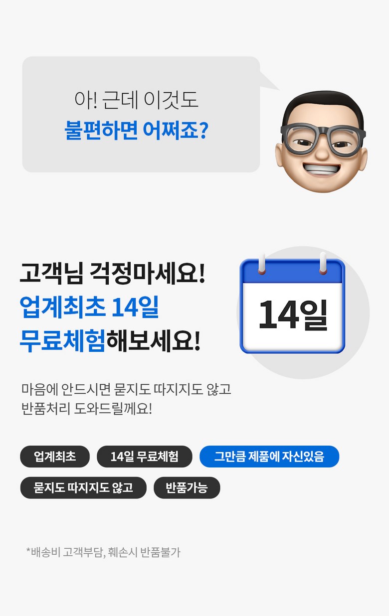 - ㆍ모니터 해상도의 차이로 인해 색상이나 이미지가 실제와 달라, 고객이 단순 변심으로 교환/반품을 무료로 요청하는 경우