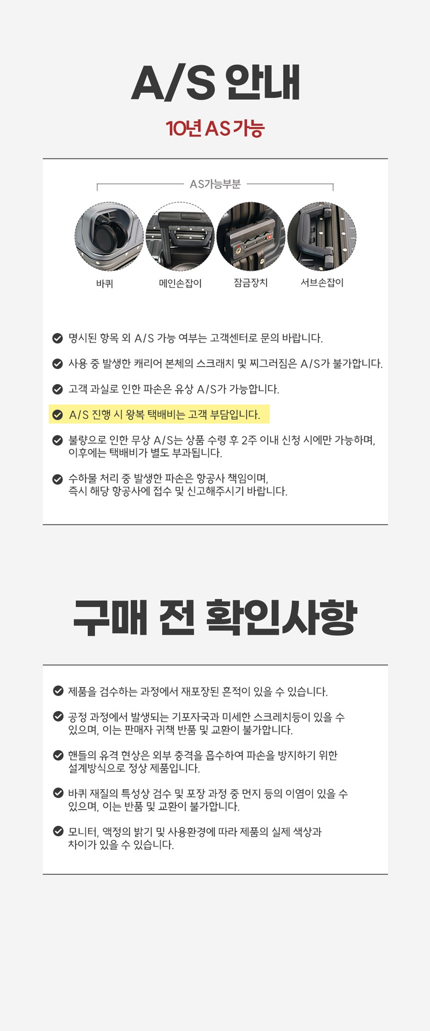 - ㆍ모니터 해상도의 차이로 인해 색상이나 이미지가 실제와 달라, 고객이 단순 변심으로 교환/반품을 무료로 요청하는 경우