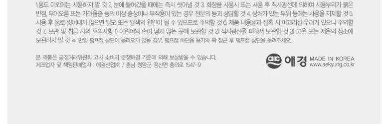 | 화장품제조업자, 화장품책임판매업자 및 맞춤형화장품판매업자 | 상품 상세페이지 참조 | 제조국 | 상품 상세페이지 참조 |