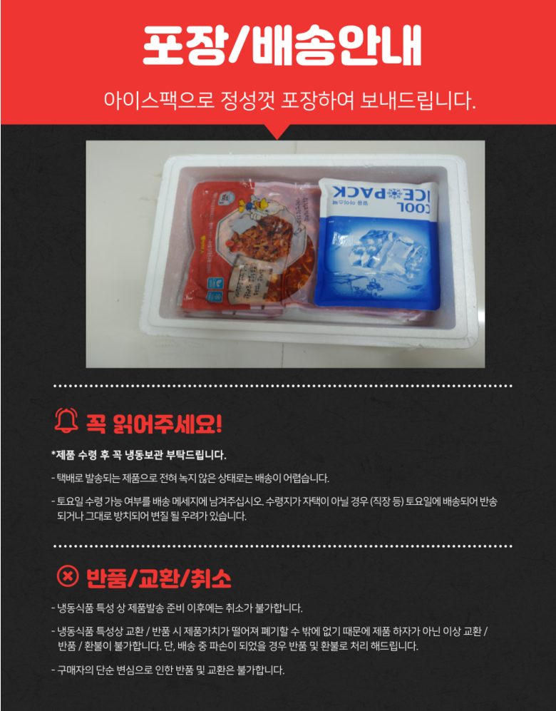 - ㆍ모니터 해상도의 차이로 인해 색상이나 이미지가 실제와 달라, 고객이 단순 변심으로 교환/반품을 무료로 요청하는 경우
