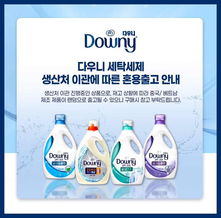 | 품목 및 제품명 | 세탁세제,탈취제 / 다우니 세탁세제 (냄새딥클린 프레시 클린) | 용도(표백제의 경우 계열을 함께표시) 및 제형 | 세탁세제(섬유용, 신발용), 탈취제[일반용(물체용)] / 액체형 |