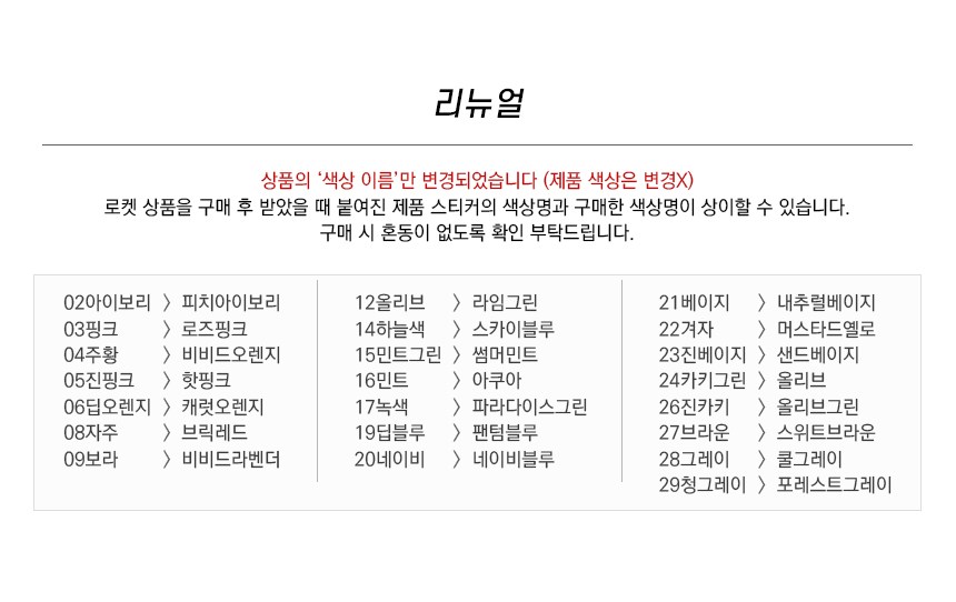- ㆍ모니터 해상도의 차이로 인해 색상이나 이미지가 실제와 달라, 고객이 단순 변심으로 교환/반품을 무료로 요청하는 경우