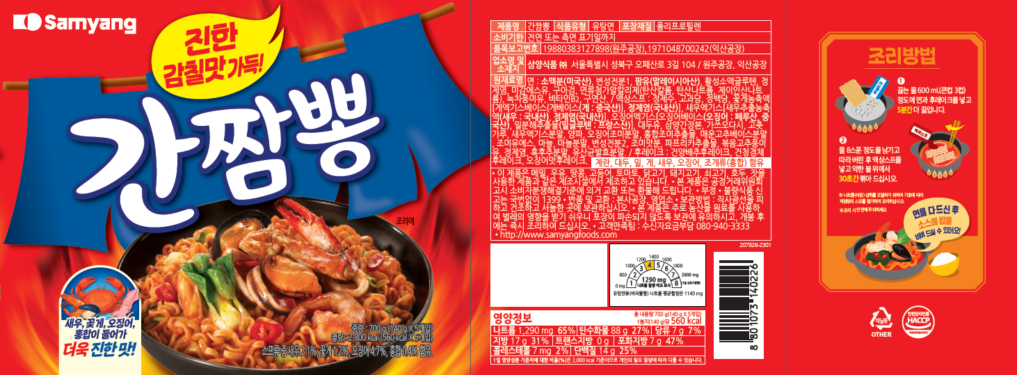 - 라면 종류: 짬뽕라면