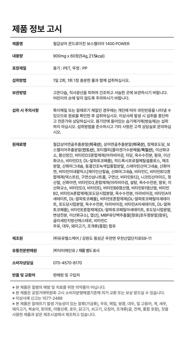 철갑상어 연골 콘드로이친 보스웰리아 1400 고함량 6형 콘트로이친 관절 닥터메인유 c6s cs6, 60정, 6개