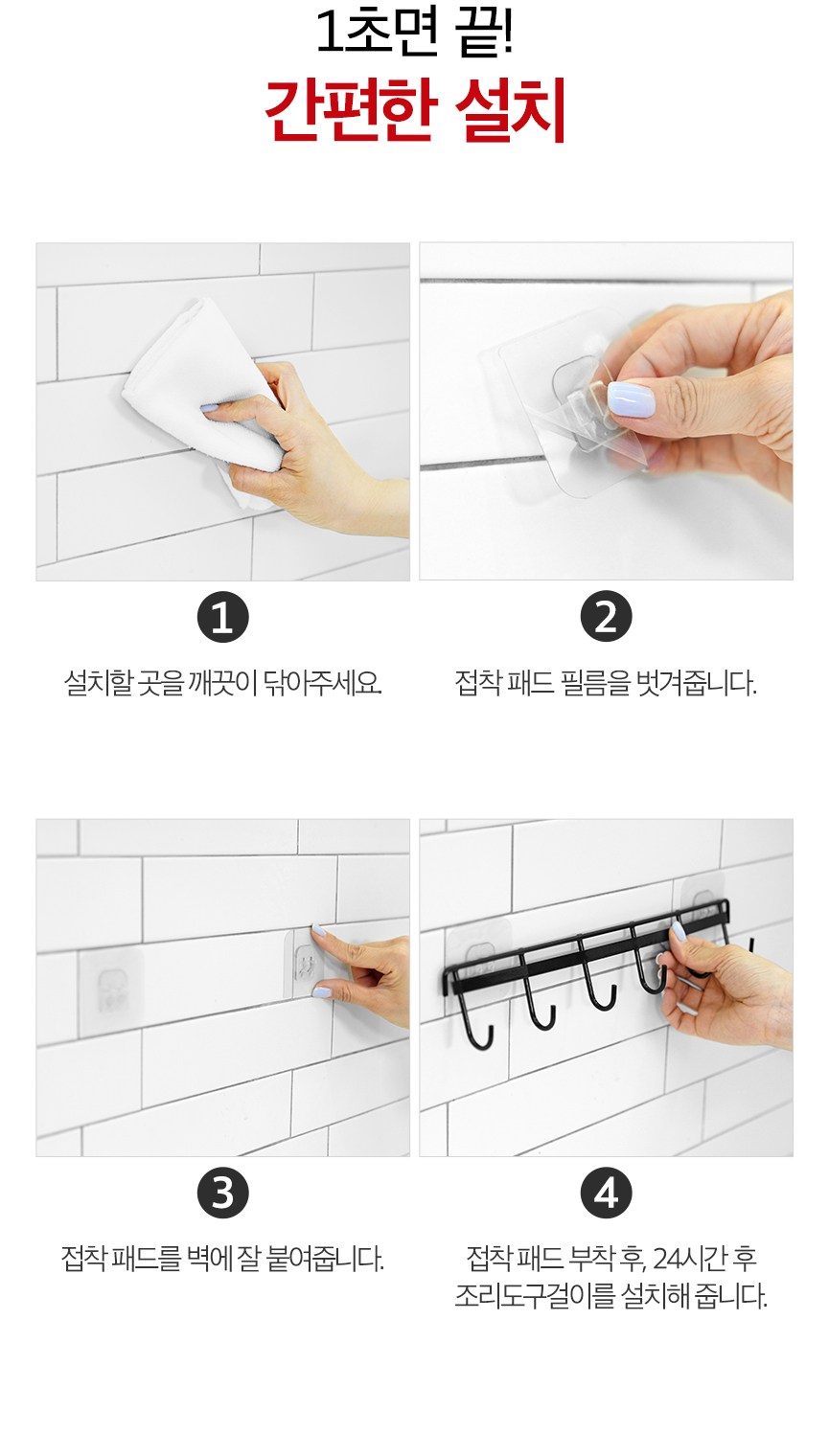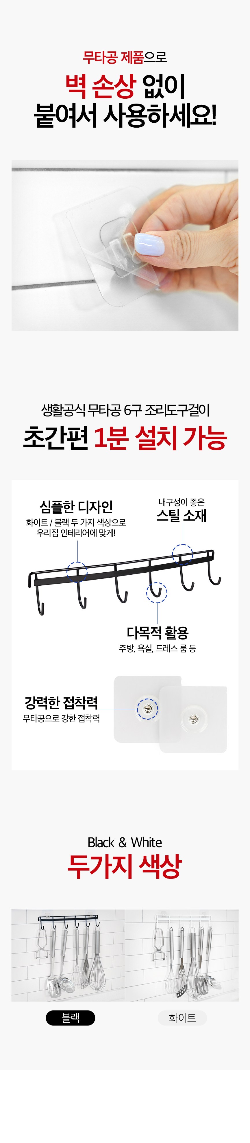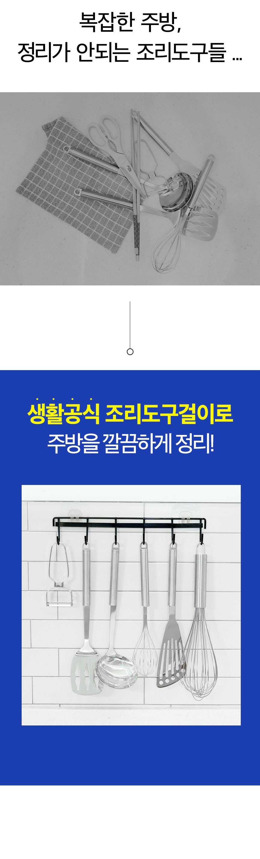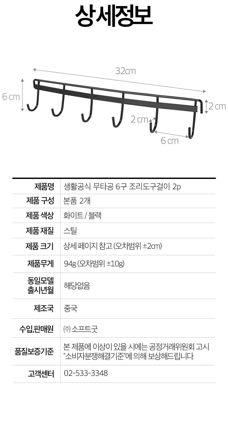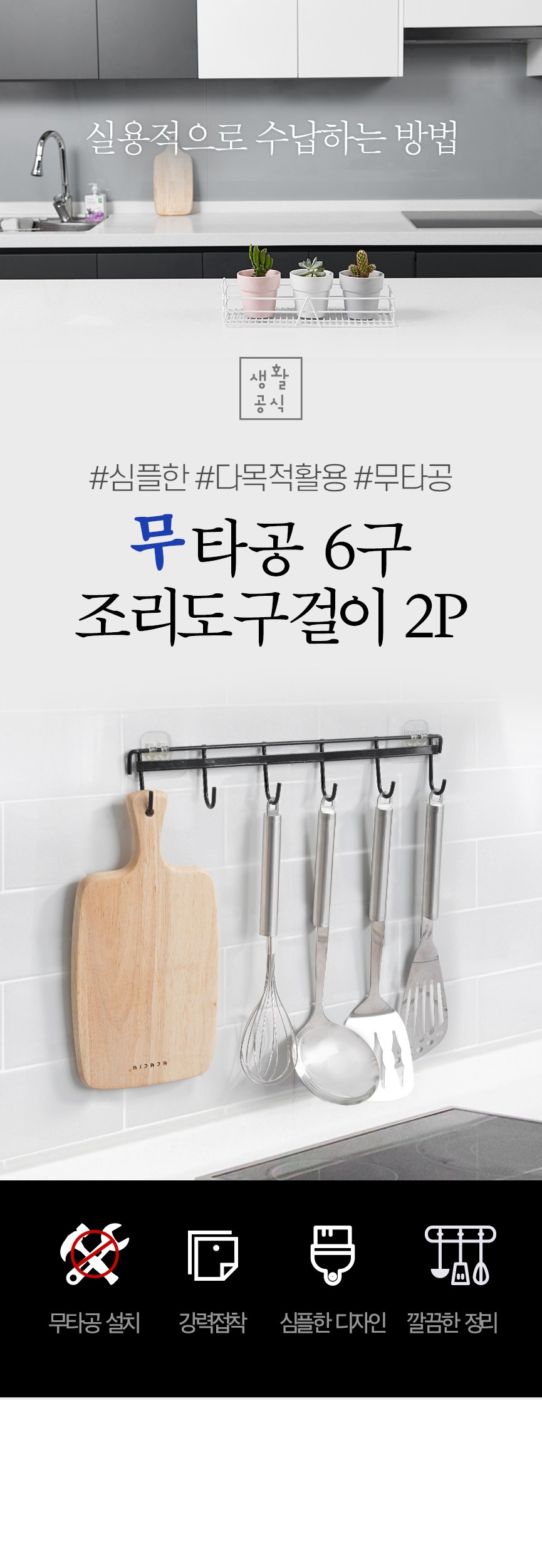 | 품명 및 모델명 | 생활공식 무타공 6구 조리도구걸이 2p, 블랙 | 재질 | 스틸 |