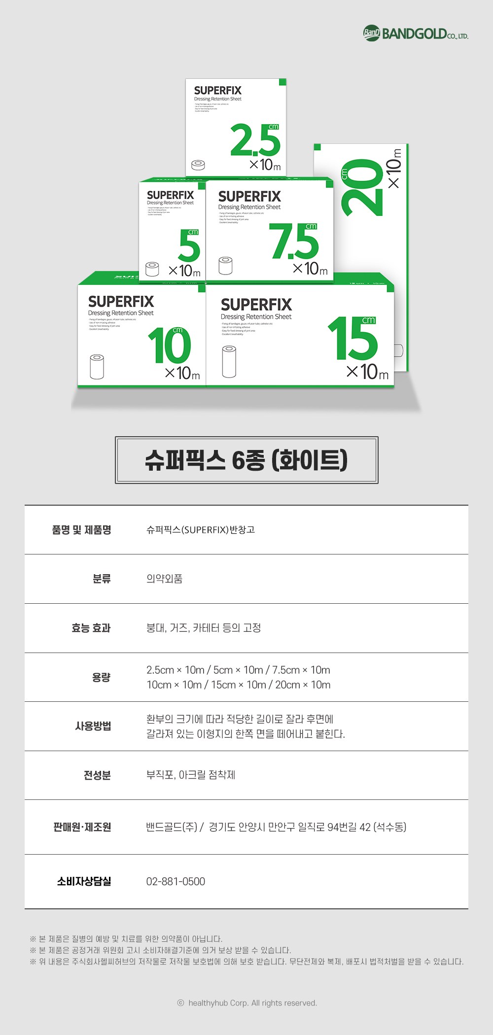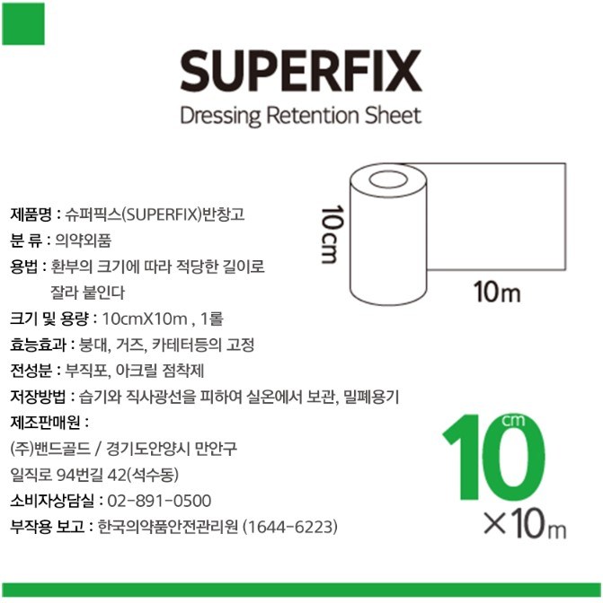 | 품명 및 모델명 | 슈퍼픽스(SUPERFIX)반창고 | 인증/허가 사항 | 의약외품 |