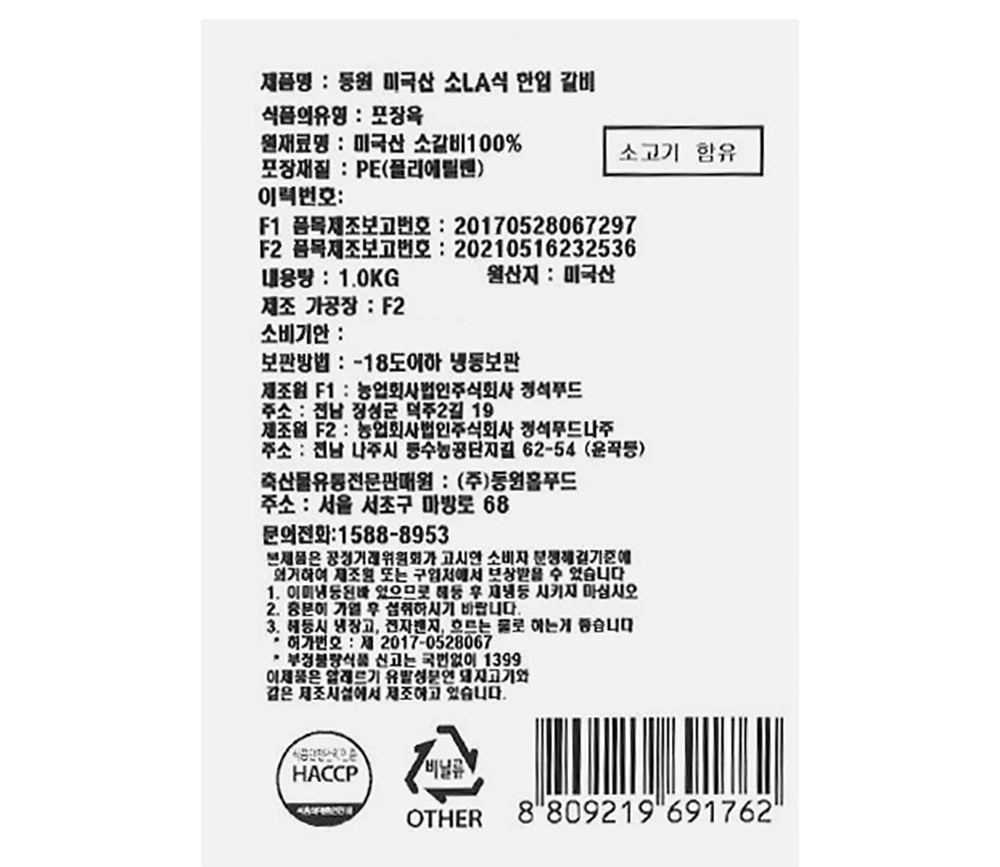| 제조연월일, 소비기한 또는 품질유지기한 | 소비기한(또는 유통기한) : 2027년 01월 25일 이거나 그 이후인 상품 제조년월일 : 2026년 01월 26일 이후인 제조상품 | 세부 품목군별 표시사항 | 축산물 등급표시: 해당없음 / 이력번호 표시유무 - 이력번호 표시제품임 |