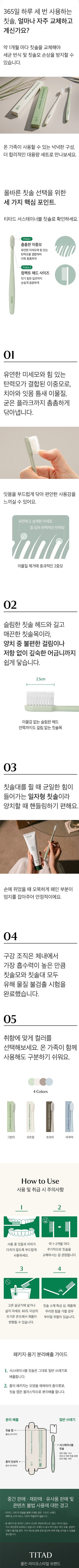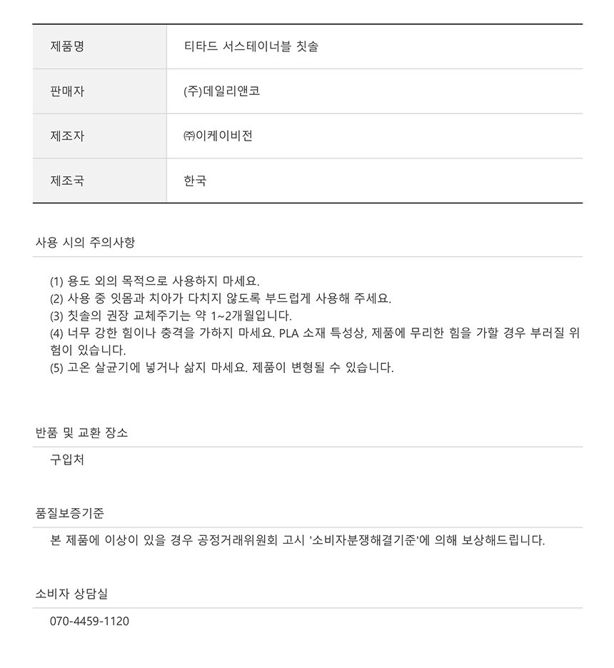 | 품명 및 모델명 | 티타드 서스테이너블 칫솔 5p 세트 | 인증/허가 사항 | 해당없음 |