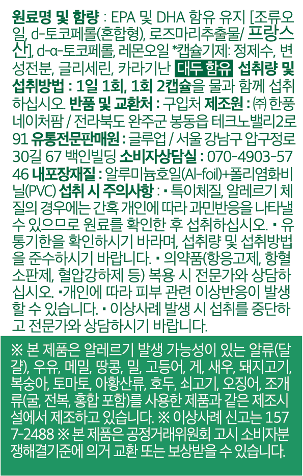 | 원료명 및 함량 | 컨텐츠 참조 | 영양정보 | 컨텐츠 참조 |