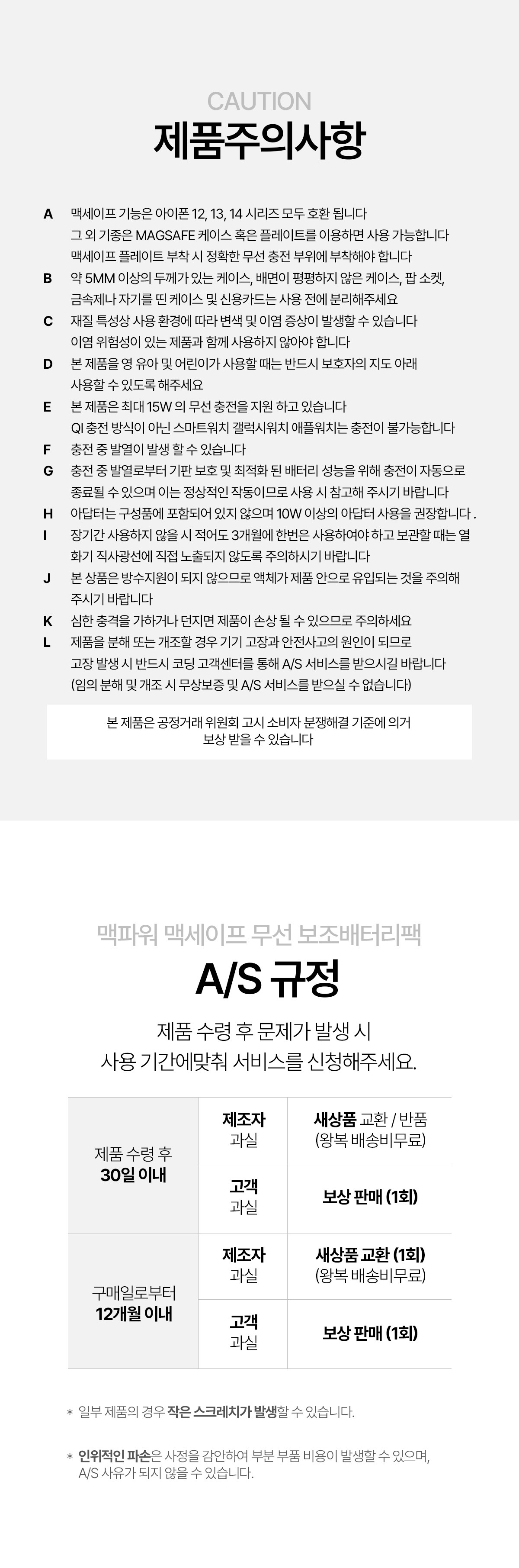 다만, 판매자의 제시사항이 관계법령보다 소비자에게 유리한 경우에는 판매자 제시사항이 적용됩니다.