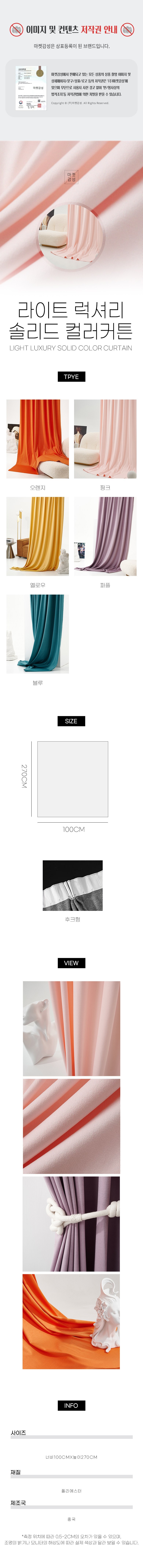 마켓감성 라이트 럭셔리 솔리드 컬러 커튼
