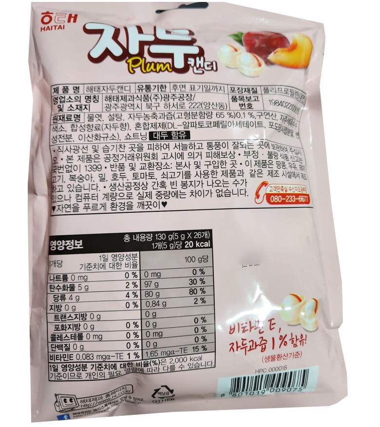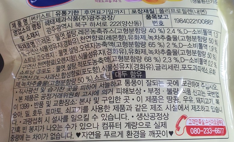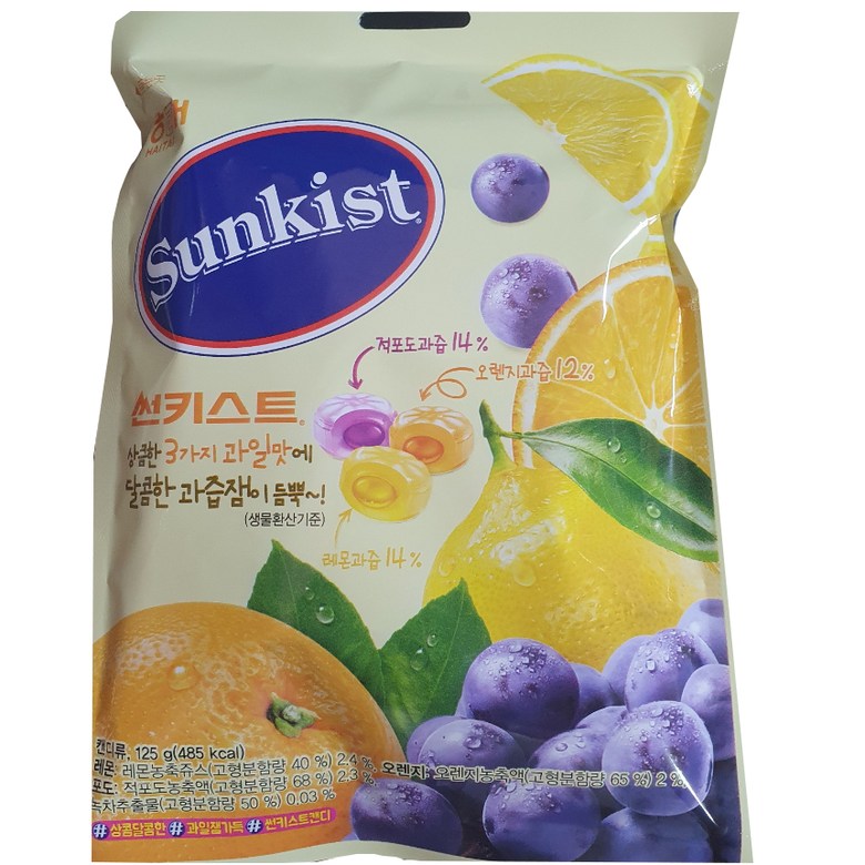 | 포장단위별 내용물의 용량(중량), 수량 | 복숭아 캔디153g*1개+청포도 캔디153g*1개+자두캔디 130g*1개+썬키스트 125g*1개, 1개 | 원재료명 및 함량 | 상품 상세페이지 참조 |
