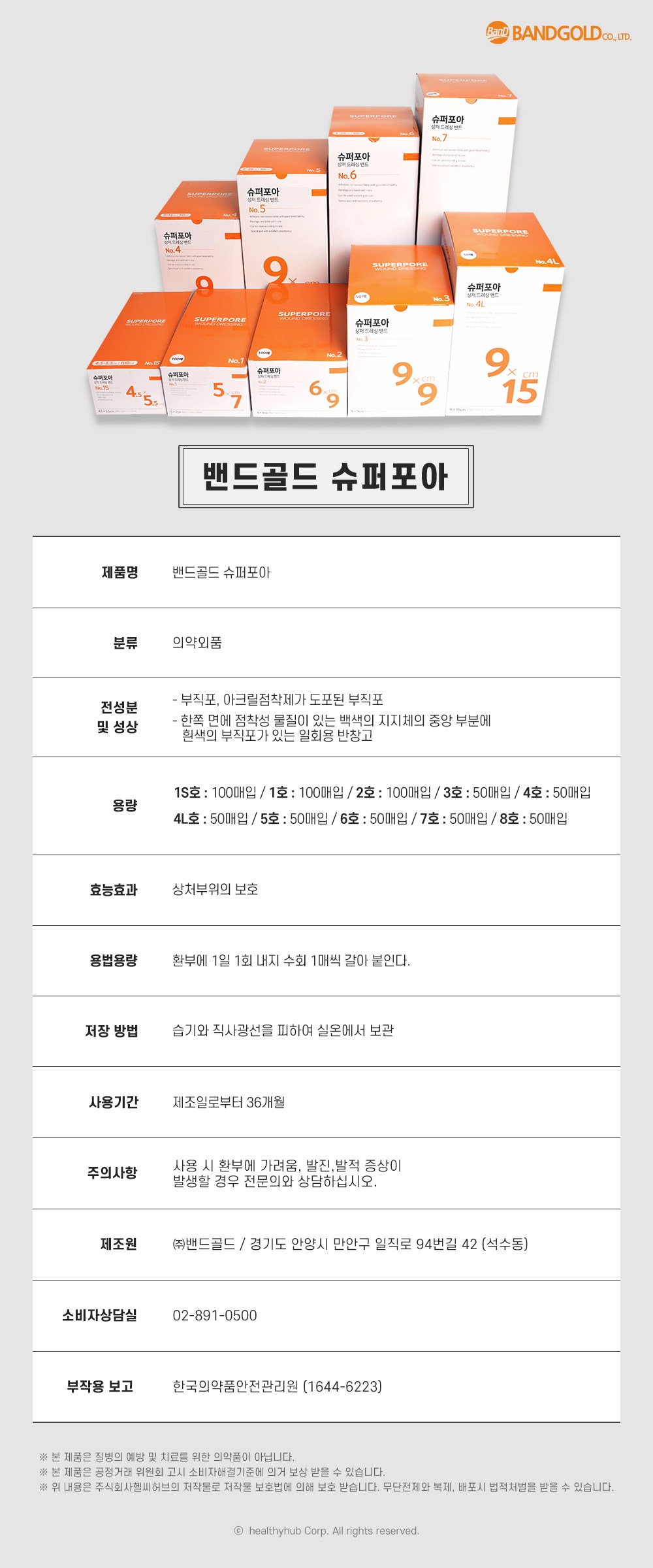 | 제조국(원산지) | 대한민국 | 제조자(수입자) | (주)밴드골드 |
