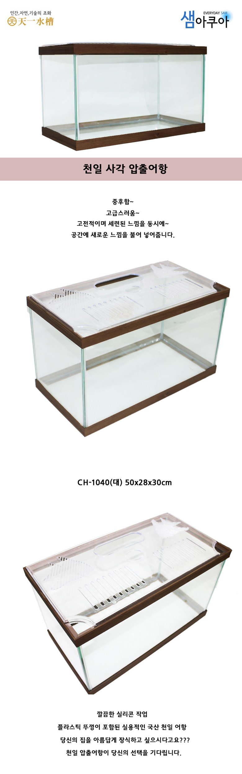 | 품명 및 모델명 | 천일 사각 압출어항 (대) 월넛 | 인증/허가 사항 | 해당사항없음 |