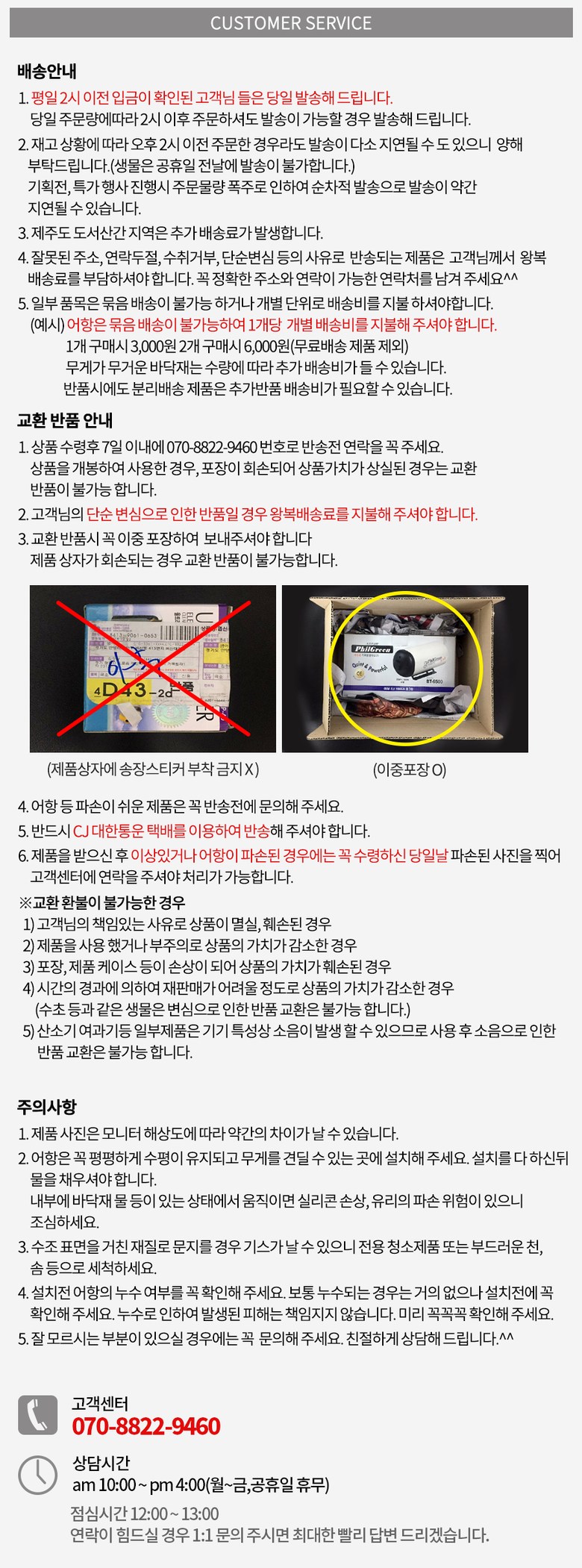 | 소비자상담 관련 전화번호 | 070-8822-9460 | ||
