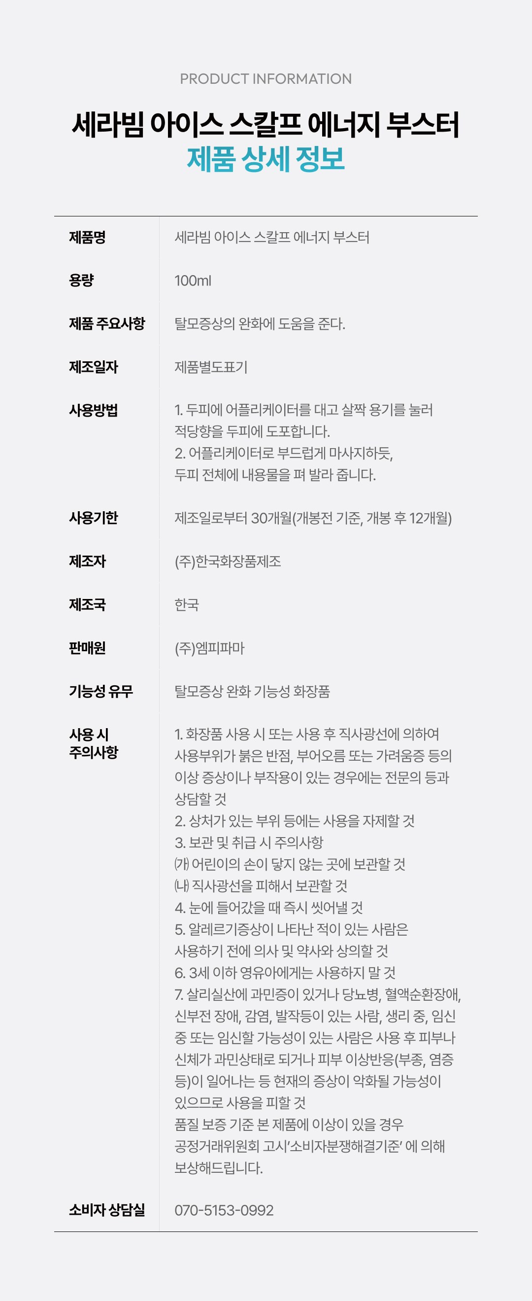 | 용량(중량) | 컨텐츠 참조 | 제품 주요 사양 | 모든 피부용 |