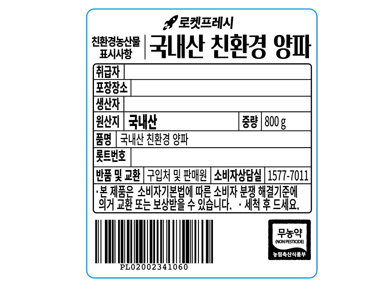 | 품목 또는 명칭 | 국내산 친환경 양파 | 포장단위별 내용물의 용량(중량),수량,크기 | 800gx6개 |