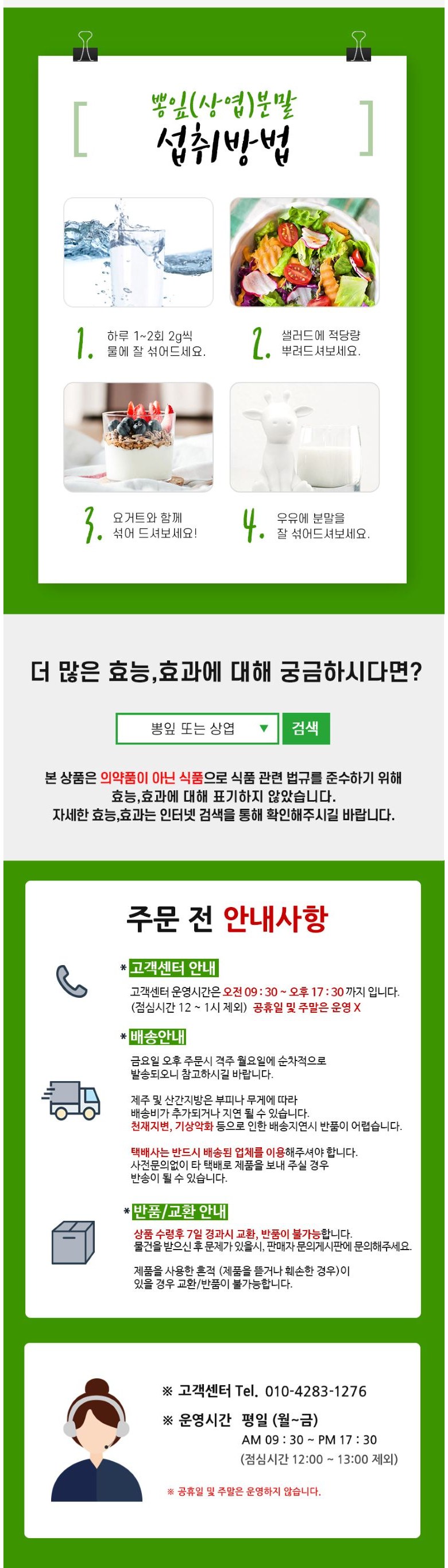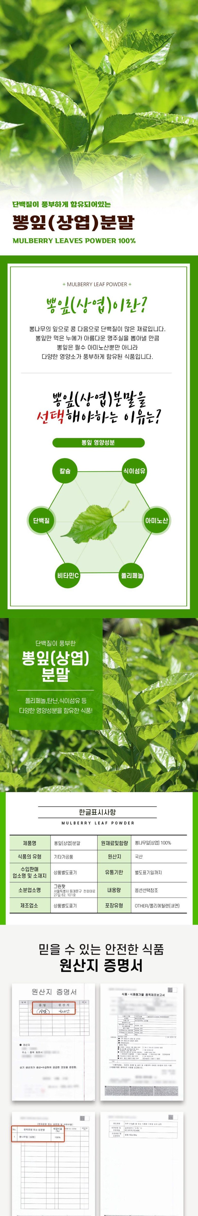 | 제품명 | 국산 뽕잎가루 분말 | 식품의 유형 | 기타가공품 |