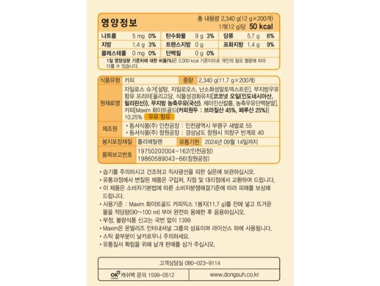 | 생산자 및 소재지 | 상품 상세페이지 참조 | 제조연월일, 소비기한 또는 품질유지기한 | 상품 상세페이지 참조 |