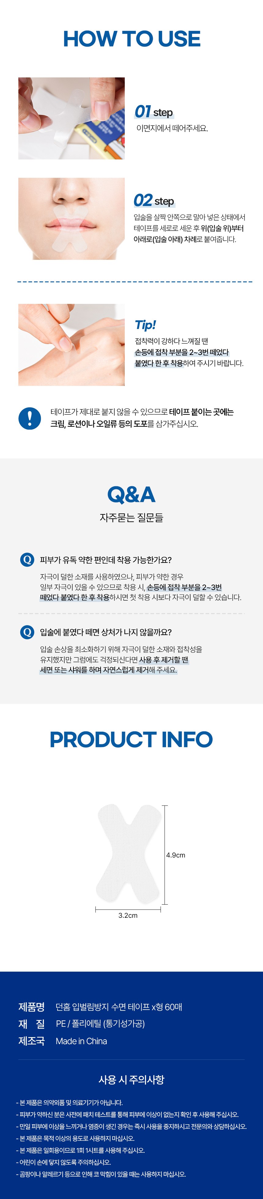 | 품명 및 모델명 | 던홈 입벌림방지 코호흡 수면 테이프 60개입 | 인증/허가 사항 | 해당없음 |